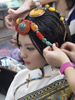 wanita "Tibet" dan disanggul modern. Rambut bagian belakang kepala
