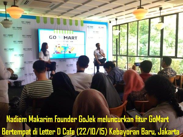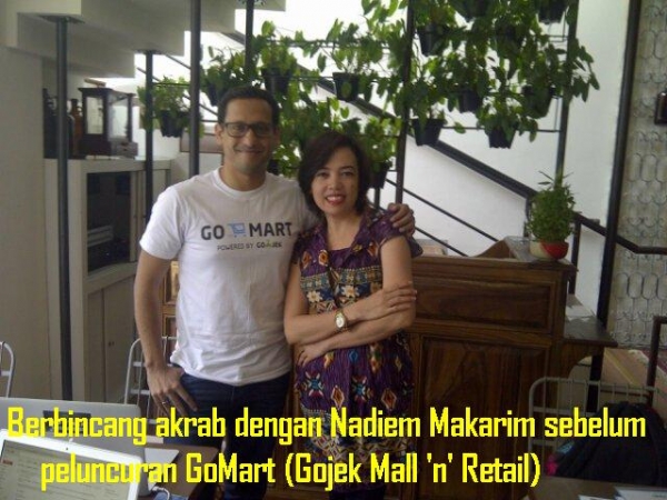 Berbincang santai selepas meluncurkan fitur GoMart beberapa hari (22/10/15) lalu di Letter D resto jl. Ahmad Dahlan Keb. Baru, Nadiem Makarim Founder GoJek menegaskan, "GoMart hadir melengkapi usaha GoJek yang lebih mengedepankan jiwa kebersamaan sosial dan pemerataan pendapatan." Sambil tersenyum ramah, Nadiem Menambahkan, "Saya tidak ingin kaya sendirian.., semua Mitra GoJek harus bisa menjadi lebih kaya lagi..."